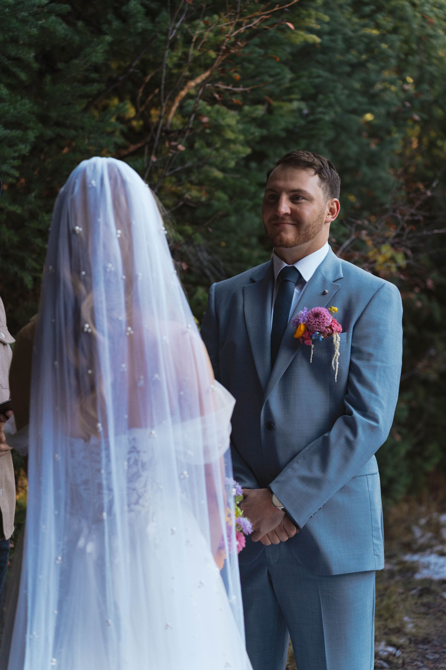One of the best things about eloping at Jordan Pines is that it offers the perfect mix of accessibility and adventure. We parked along the main road and took a peaceful five-minute walk into the forested meadow area. Even with such a short hike, the scenery opens up into everything you could want for a mountain elopement.